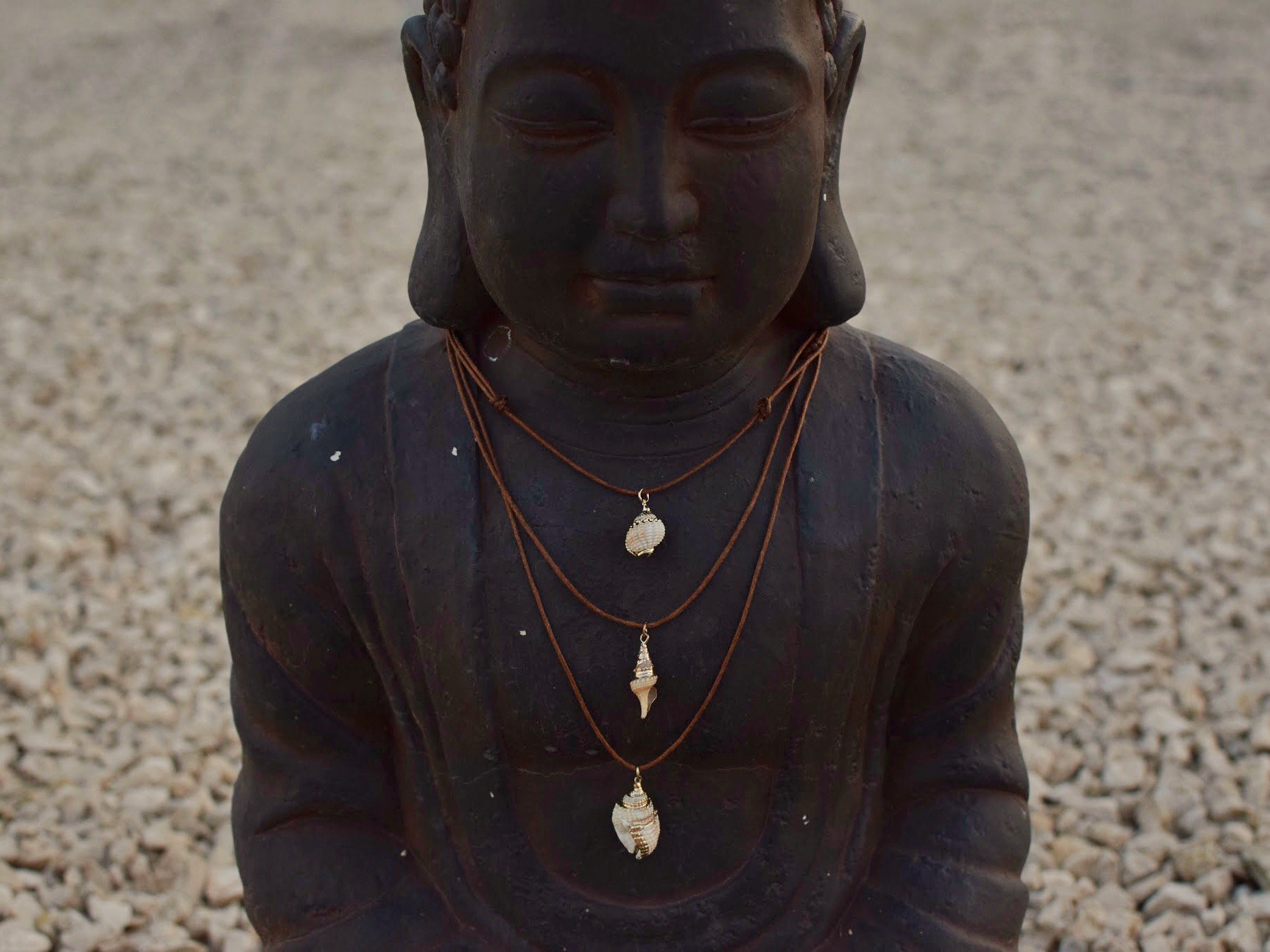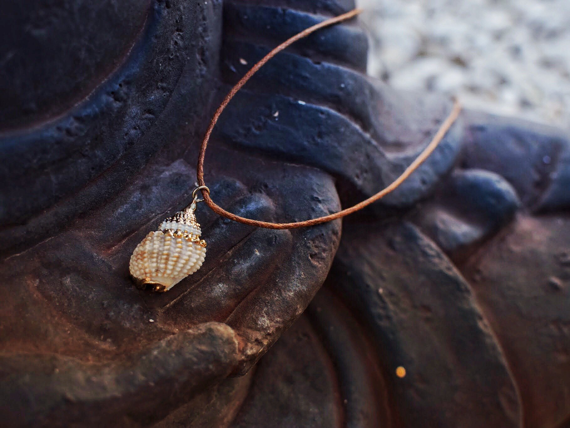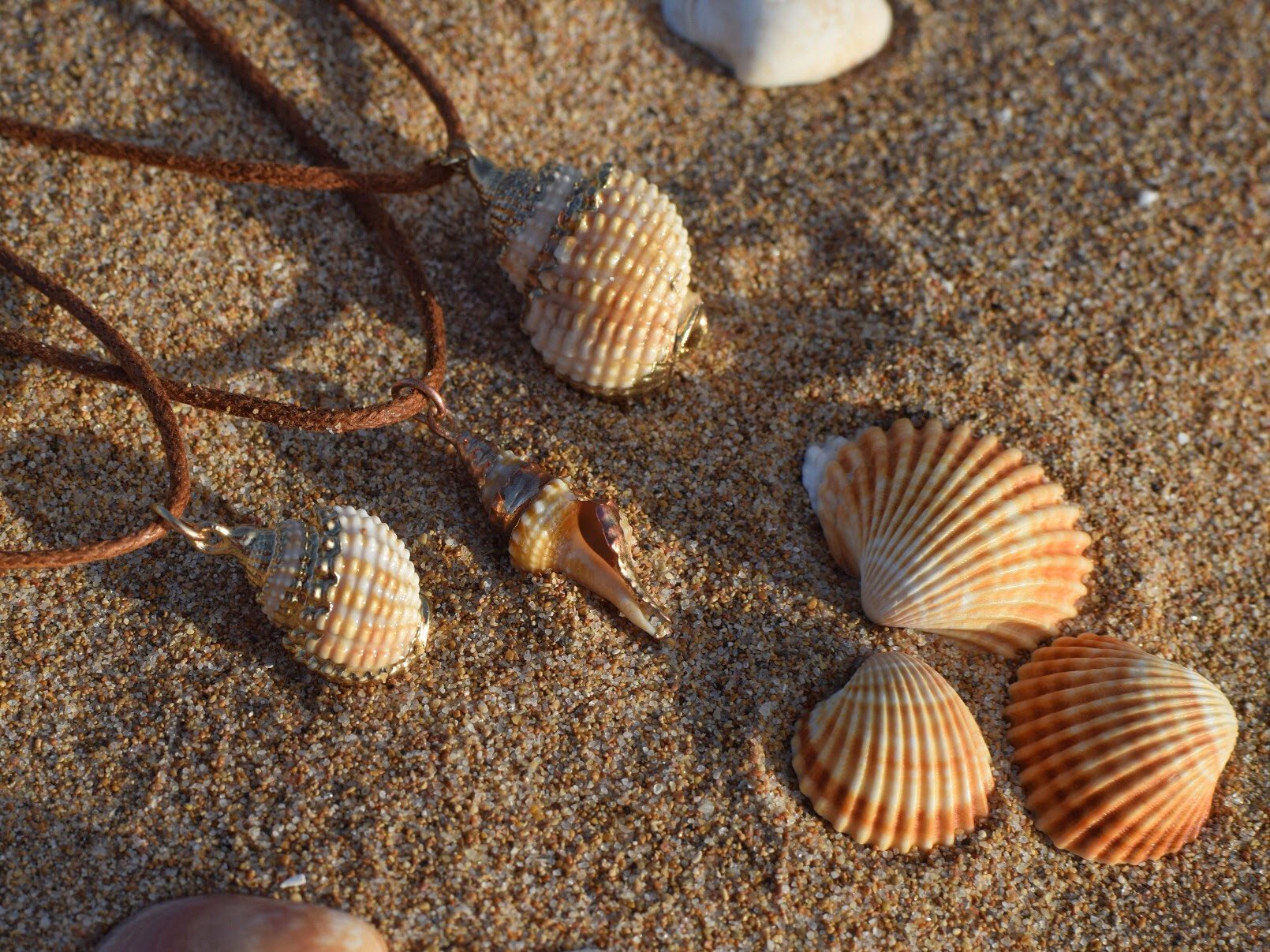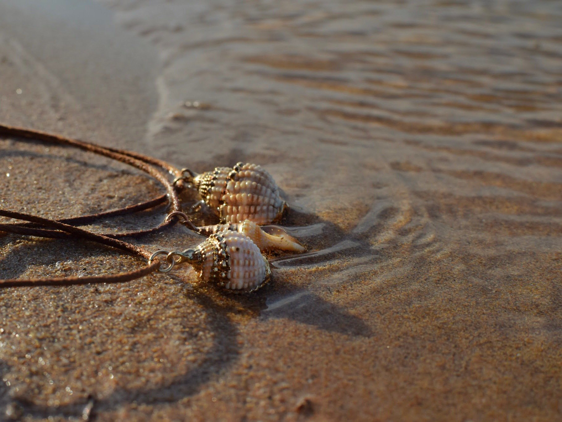Caracolas decoradas con esmaltes metálicos para darle un toque elegante a tus días de playa ?? Con cuerda marrón claro ajustable para adaptarlo a cualquier conjunto ✨